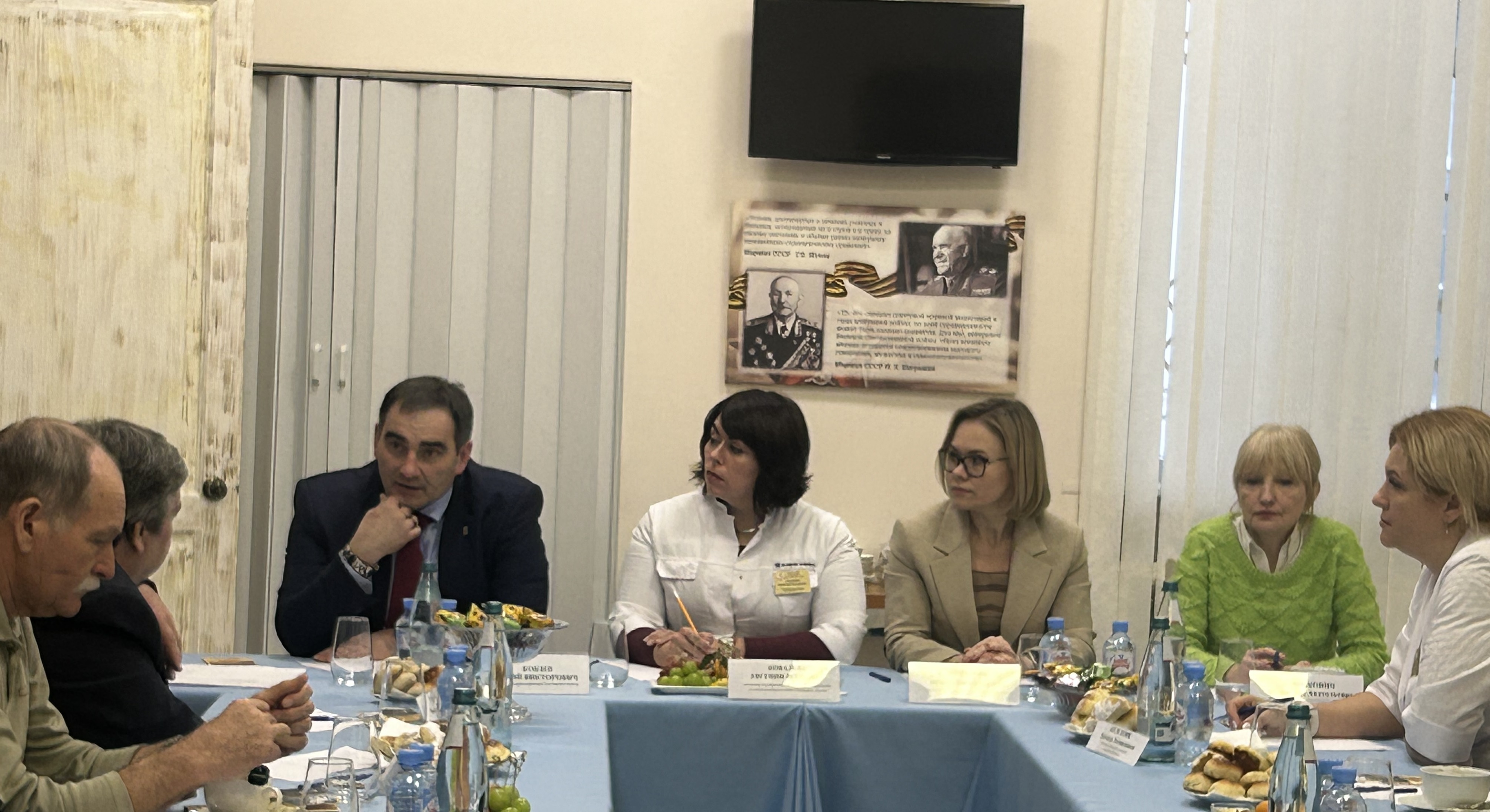 В работе Круглого стола приняли участие: министр здравоохранения Ростовской области Кобзев Ю.В., начальник ГБУ РО «Госпиталь для ветеранов войн» Ковалева Е.И., министр труда и социального развития Ростовской области Шувалова И.Н., заместитель руководителя по медицинскому сопровождению филиала Государственного фонда поддержки участников СВО «Защитники Отечества» по Ростовской области Зинькович В.А., руководители ветеранских организаций области.